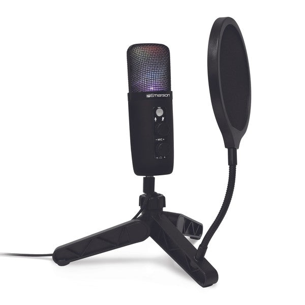 USB Gaming & Streaming Condenser Microphone with LED Lighting and Pop Filter.